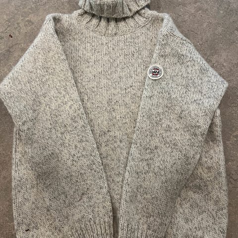 Devold ullgenser for herre i størrelse L/52. Genseren er av ufarget ull i bunnen og grått klassisk mønster. Har rund hals. 100% ull med ribbestrikkede kanter nederst og på ermene. Passer til friluftsliv og utendørsaktiviteter der man ønsker et varmt og funksjonelt ullplagg.