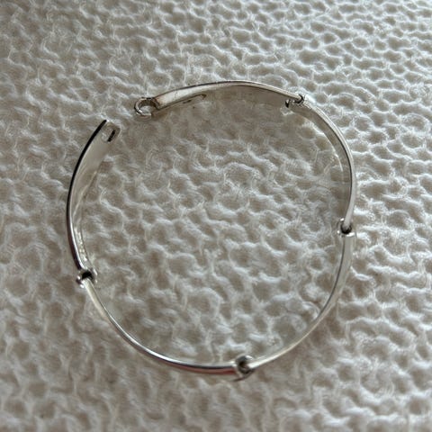 Selve anhenget er i sølv og akryl med "bobler" og en grønn og blå og grønn større "boble" i den støpte acrylen.