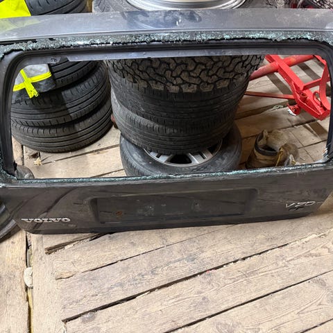 Bakluke som har stått på en v70 -05. Med spoiler og pusser motor som virker. Farge sort, har ikke fargekode.