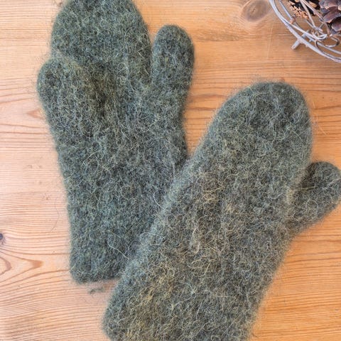 Hjemmestrikket tova tøfler lengde 24cm ca str 38 - 39 i grønt.