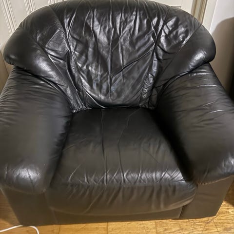 Gir bort en skinnsofa, veldig god å sitte i, ingen skade, siste frist å få en fin og god sofa er tirsdag den 3 mars
