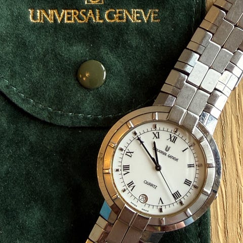 Selger en elegant og klassisk Universal Genève i massivt 18k gull.