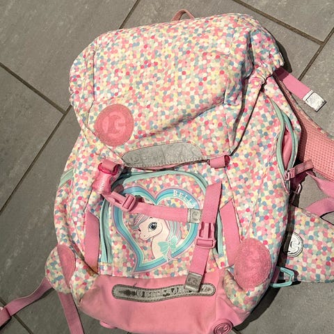 Skolesekk og barnehagesekk med enhjørning motiv lys blå