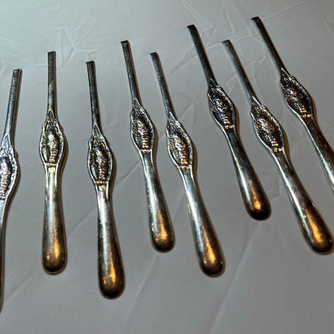 Sølvplett hummergafler med motiv 6 stk, ukjent merke