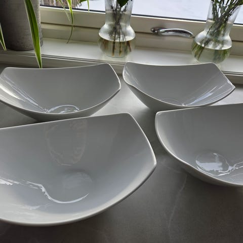 To små skåler selges. Tåler ovn og oppvaskmaskin. Noen skrapemerker i begge skåler. Diametet ca 9 cm, høyde ca 5,5 cm.