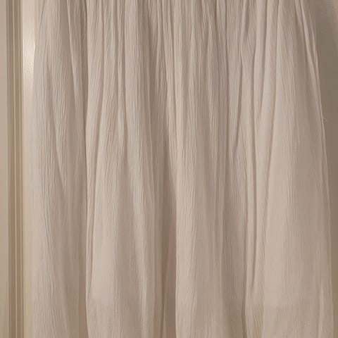 Størrelse L, lengde 70 cm. Foret, men noe gjennomsiktig. Elastisk midje. Aldri brukt, kun vasket.