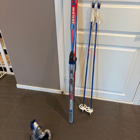 Skilom Light Touring Stepbase langrennski i lengde 210 cm. Skiene har blå overflate med integrert smørefri stepbase-mønster i festesonen. Undersiden har sort såle. Leveres med monterte Rottefella NNN-turbindingssystem (basert på bildene). Egner seg til klassisk langrenn og turbruk på preparerte løyper. Sko str 41. Skiene må sendes i spesialpakke grunnet lengden. Oppgjør på Vipps. Porto kommer i tillegg til prisen.