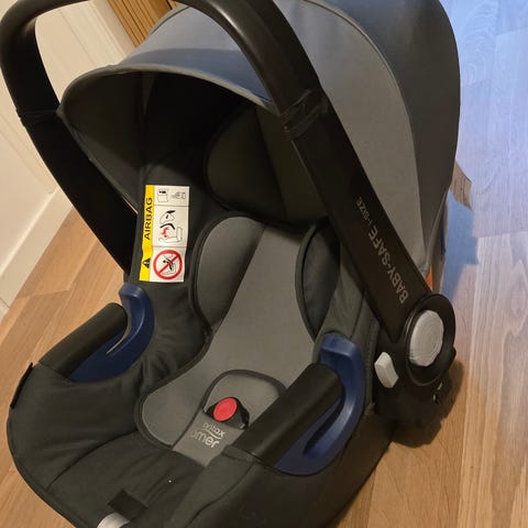 Nyfødt sete nesten ubrukt og fremstår som ny selges for 1000,- Det blå pent brukt, passer til barnets høyde: 61-105 cm. Selges for 1000,- med base