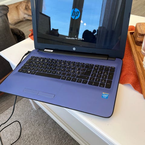 Stor Asus bærbar PC. Modellen har innebygd tastatur i full størrelse med numerisk del, integrert styreflate og skjerm i standard bredformat. Meget godt egnet til å se filmer. God lagringsplass