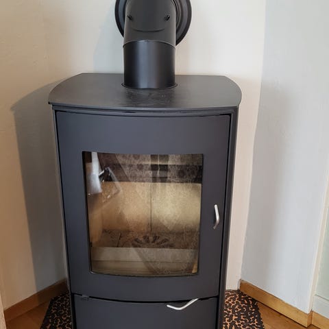 Pen og god Jøtul F370 vedovn inkludert underlagsplate i glass (til hjørnemontering) og rør. En sprekk i den bakre brennplaten, men den er utskiftbar. Må hentes.