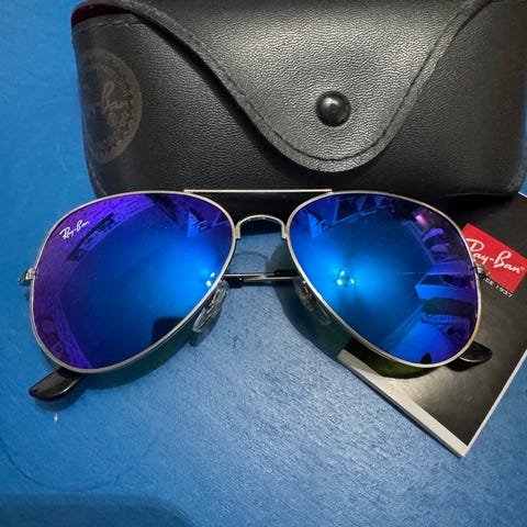 Pilotbriller fra Ray-Ban med sølvfarget innfatning og speilglass.