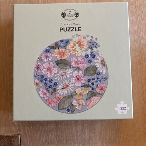 Rundt puslespill med 1000 brikker. Blomstermotiv.