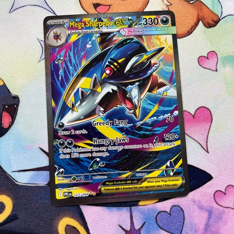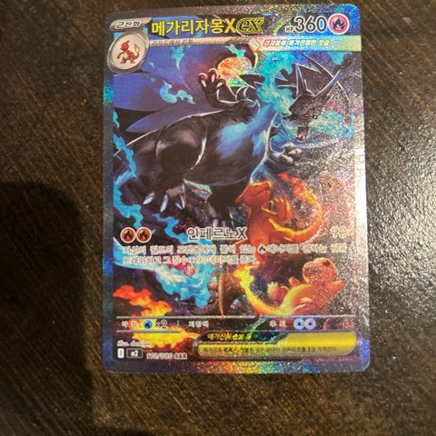 Pokémon Charizard VMAX samlekort. Holografiske kort i plastbeskyttelse, motiv med Charizard i dynamisk illustrasjon. Standard størrelse for Pokémon TCG-kort, med klassisk blå bakside med Pokéball-design. Egnet for samling og bruk i Pokémon Trading Card Game-deck eller som del av en samling av Charizard- og VMAX-kort.