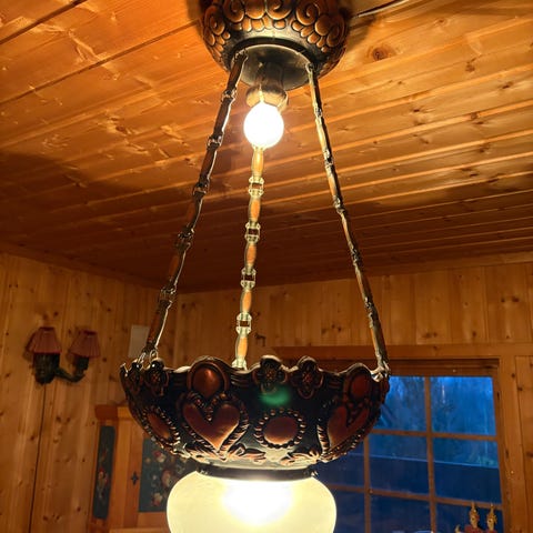 Gammel tre lampe virker fint