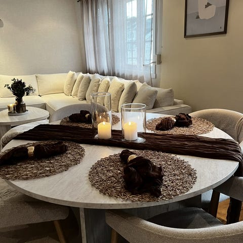 Sofabordet og spisebordet er kjøpt på Møbelringen
