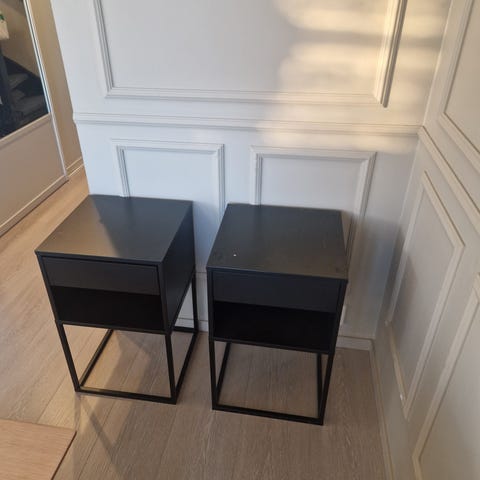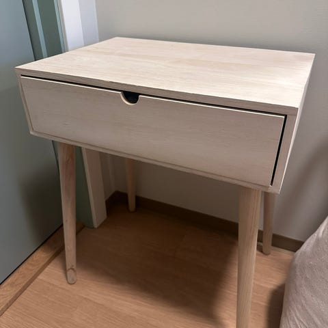 Noen små merker, se bilder. Synes nesten ikke, ellers fin. Skuffen funker som den skal. Gjerne hentes i Oslo.