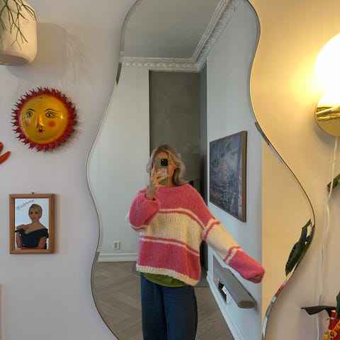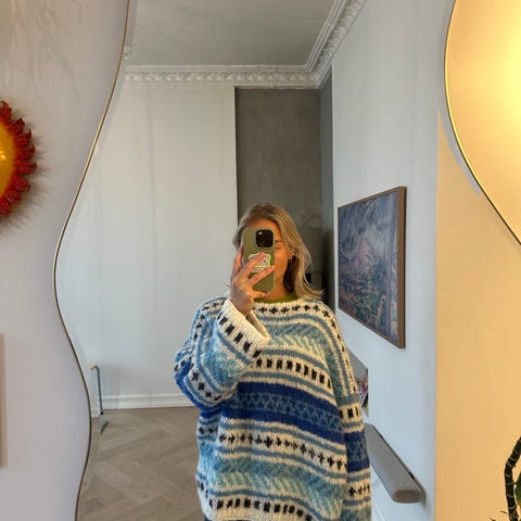 Helt ubrukt hjemmestrikket genser som er strikket i Pelz 100% Nylon