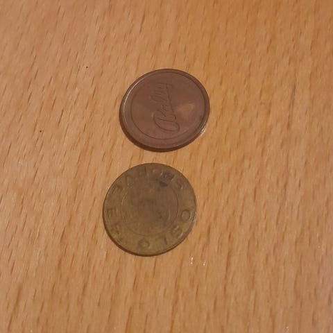 Diverse samling polletter og jetonger i metall. Ulike størrelser, former og motiver, blant annet bowlingpolletter, transport- eller spillepolletter og andre typer jetonger. Myntene har forskjellig farge og legering, blant annet messing- og sølvfarget metall. Egner seg som samlerobjekter, rekvisitter eller til dekorasjon. Antall og typer fremgår av bildene.2 poletter fra Oslo sporveier blant annet. Kan sendes kjøper betaler porto