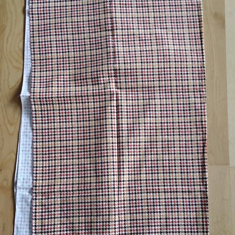 Rutete stoff, metervare. Vet ikke nøyaktig innhold, det er noen litt blanke, sølvfargede innslag. #fæbrikstad