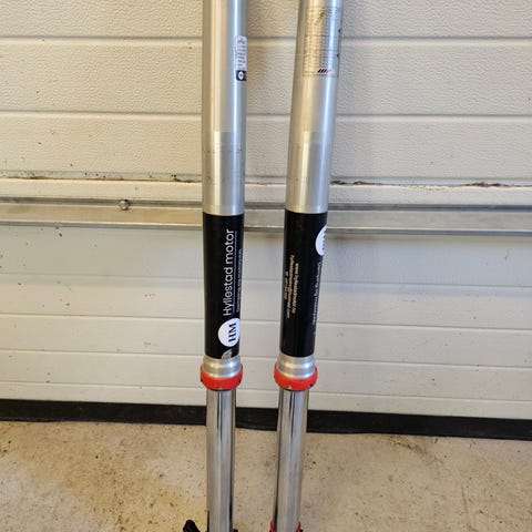 Originale WP Apex dempere fra 2022 mod Husqvarna 901 selges. Sykkel kjørt 22400km, dempere 100% funksjonelle og i fin stand, ingen lekkasjer. 54/43mm. Selges grunnet kjøp av samme merke EXP dempere. Ny pris til sammen over 30 000. kr.