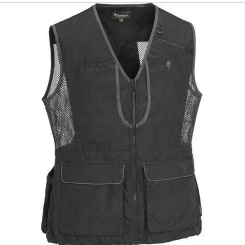 Pinewood Outdoor Collection vest for dame i størrelse M (38/UK 12). Vesten er i grå og svart farge med flere praktiske lommer med glidelås og klaff både foran og bak. Ytterstoffet består av 65 % polyester og 35 % bomull, mens fôr og øvrige deler er i 100 % polyester. Modellen har høy krage og hel glidelås i front. Egnet som fritids- og turvest med god oppbevaringsplass i lommene.