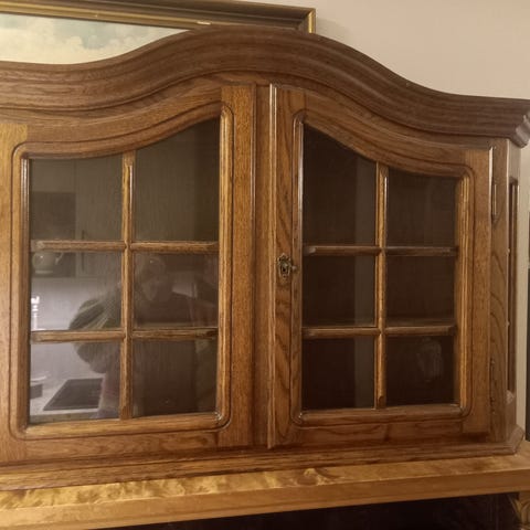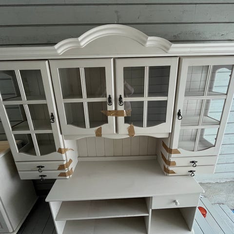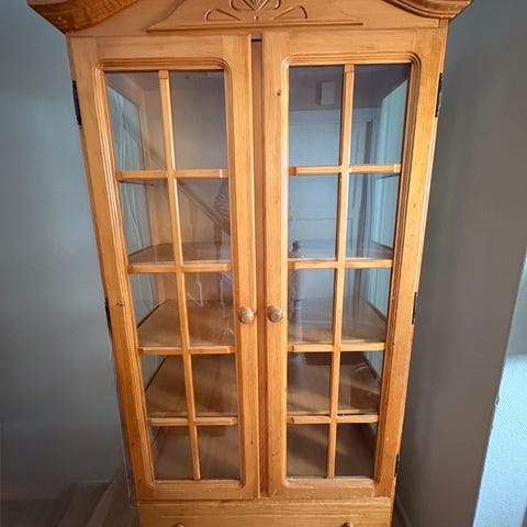Eldre seksjon i klassisk stil gis bort. Består av underdel med skap og skuffer samt overdel med vitrinedører.