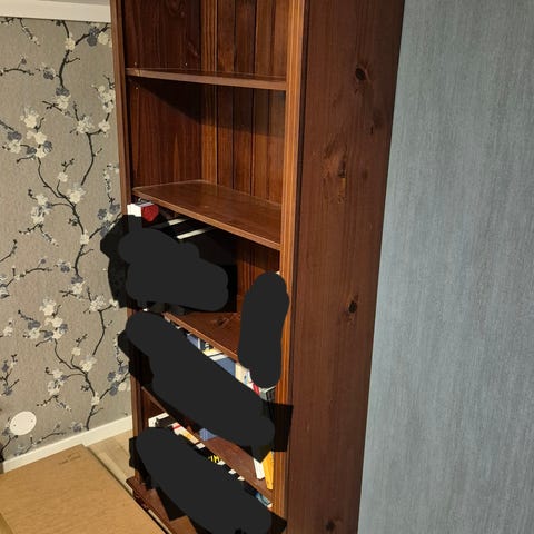 Ukjent produksjonsår og materiale. Seksjonen sto igjen i boligen når vi kjøpte i 2018.