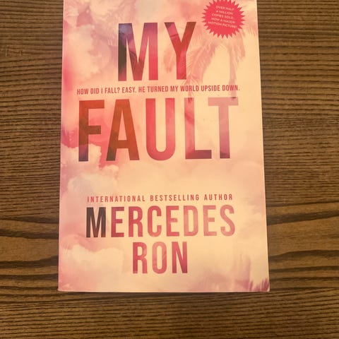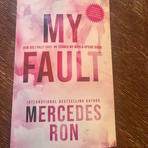 Mercedes Ron "Your Fault" bok på engelsk. Roman utgitt av Bloom Books. Pocketutgave med myk perm. Boken har engelsk tekst og tilhører sjangeren moderne romantikk/drama. Passer for lesere som ønsker en engelskspråklig ungdoms- eller voksenroman.
