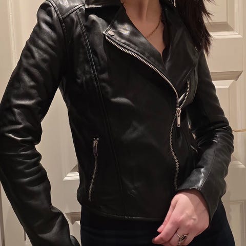 Sort skinnjakke fra Carlings i størrelse S. Jakken har klassisk biker-inspirert design med glidelås i front, flere glidelåslommer og belte nederst. Jakken er fra Carlings merket Saints&Mortals (finn lot meg ikke velge riktig merke)
