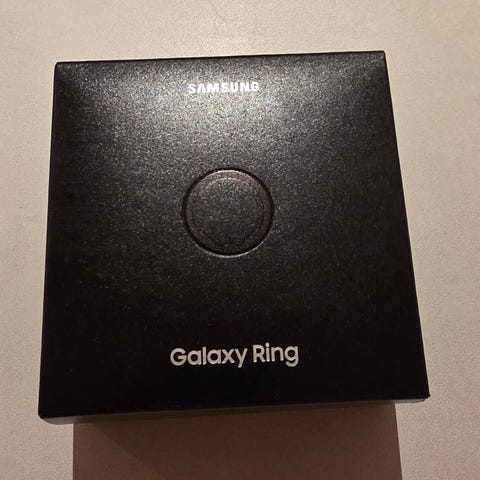 Samsung Ring aktivitetsring i svart. Ringen er utformet som en smart ring som kan brukes til måling og registrering av aktivitet og søvn når den er koblet til kompatibel app og enhet. Leveres i etuiet som fungerer som lade- og oppbevaringsboks. Egnet for daglig bruk på finger som et alternativ til tradisjonelle aktivitetsarmbånd eller klokker.