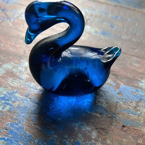 Blå keramikk katt figur. Dekorativ gjenstand formet som en liggende katt, laget i glasert keramikk i en dyp blå farge. Passer som pyntegjenstand i stue, soverom eller andre rom der man ønsker et dyremotiv i interiøret.