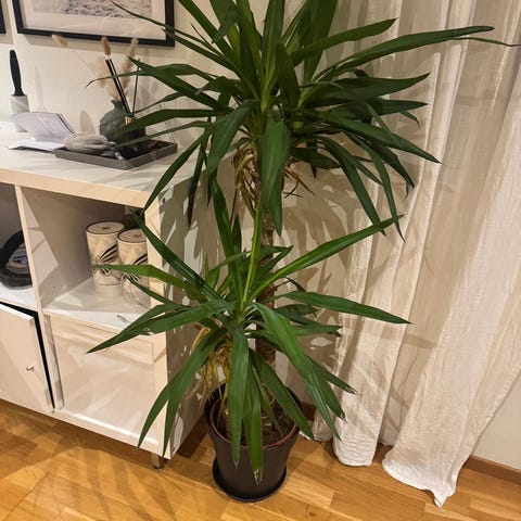 Sjelden stor og fin Yucca palme i potte. Egner seg som inneplante i stue eller andre rom med naturlig lys. Kan plasseres på gulv som et markant grønt innslag i interiøret.