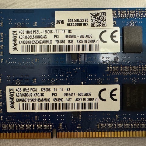 Minnebrikker 1x16gb + 1x8gb begge DD3 til bærbar.
