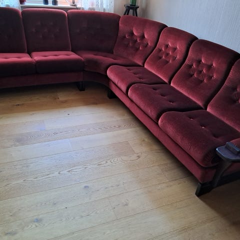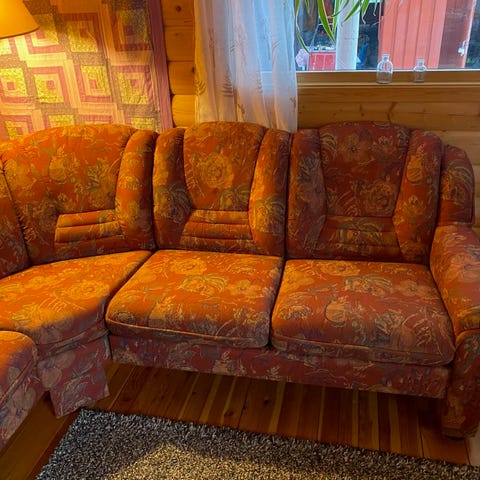 Hjørnesofa med Treseter, og to seter og stol, Lom møbler