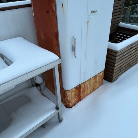 Plastboksene er sprukket i fryseren.