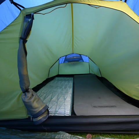 Senterstangen er litt forkortet nederst. Jeg har løst dette ved å legge en liten trekloss under stangen når teltet settes opp. Dette fungerer utmerket, og teltet står akkurat like stramt og stødig som det skal. Det er også mulig å kjøpe til ny stang om man ønsker det. Har skrevet godt brukt/synlig brukt pga teltstangen, ellers er det helt og beskjedent brukt.