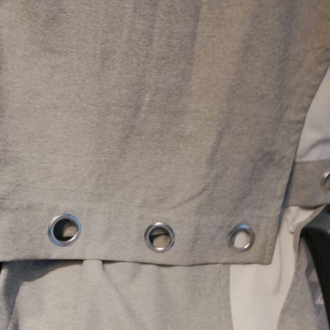 4*Grå: 140*220. Kid gardin i 100 % polyester i farge med maljer for oppheng på gardinstang. Veldig lite brukt så fremstår som nye.