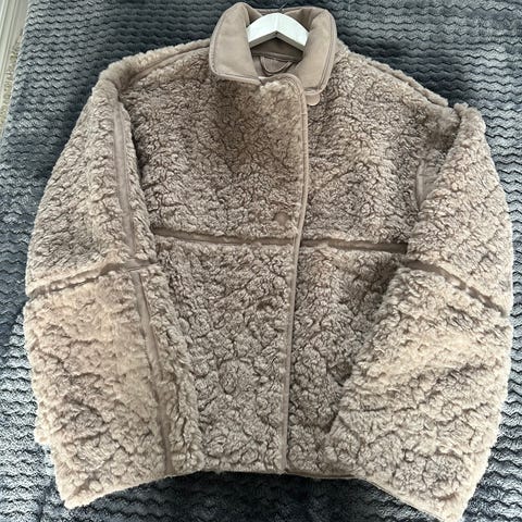 H&M jakke fra Ski collection. Jakken er beige og har ytterstoff med mesh-detaljer. Den har hette, glidelås i front og store frontlommer med klaff. Ermene har justerbare avslutninger med borrelås.