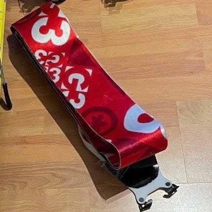 Oransje pomoca feller brukt til ski med bredde 90, lengde 178cm. Limet begynner å bli dårlig, bør nok påregne å kjøpe ny fellelim.