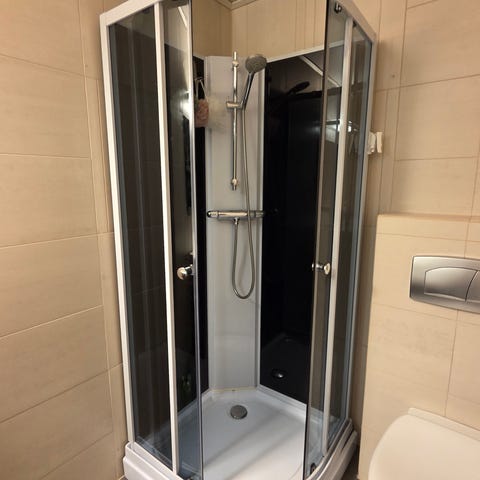 Dusjkabinett buet hjørne 75x75 cm (83x83 cm) pent brukt