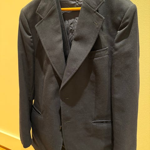 Dressmann dressjakke m vest for herre i størrelse 48. Jakken er blå og laget i bomull. Klassisk modell med jakkeslag, brystlomme og frontlommer. Egnet til bruk sammen med dressbukse eller penbukse til formelle anledninger eller jobb.