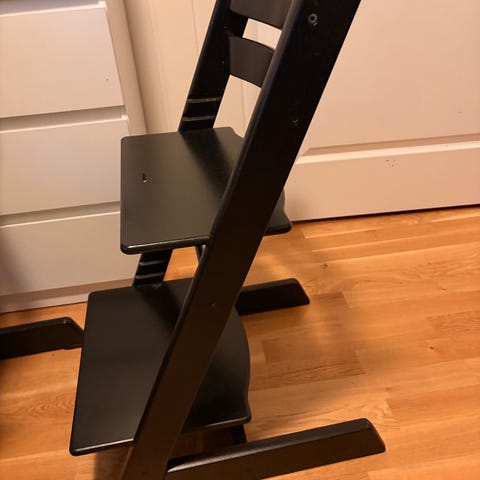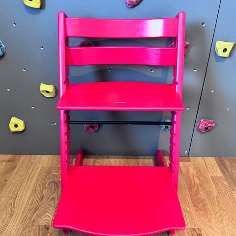 Stolen har vært brukt ved besøk av barnebarn og selges nå av besteforeldre ettersom barnebarna er blitt store; stolen er følgelig lite brukt og selges nesten uten bruksmerker.