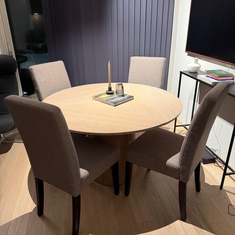 Selger 4 stk pent brukte spisestoler fra Skeidar, samlet kr 500.