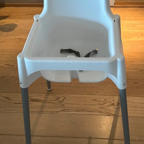 IKEA høy barnestol hvit plast