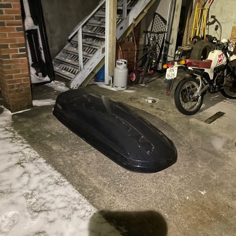 Thule Polar 700 takboks i grå farge. Modellen er egnet for montering på takstativ på bil for ekstra lasteplass til bagasje og ski.
