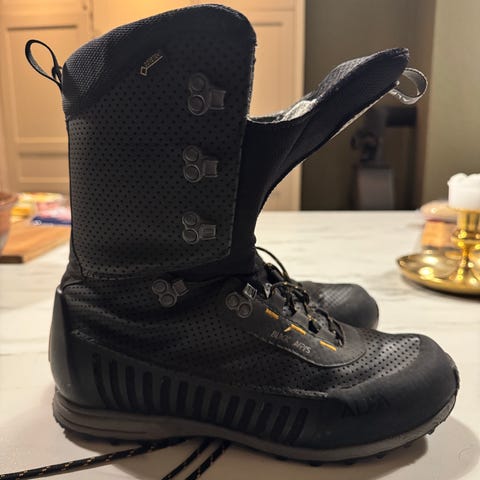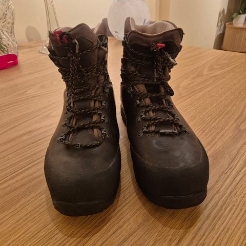Alfa Walk King Advance tursko for herre i størrelse 44. Modellen er en kraftig tursko/støvel egnet til fotturer. Skoene har overdel i brunt materiale med høyt skaft for bedre ankelstøtte. De er utstyrt med kraftig yttersåle med grovt mønster for godt grep på variert underlag. Snøring med flere kroker gir mulighet for god tilpasning rundt fot og ankel. Egner seg til fotturer og generell bruk ute i terreng.