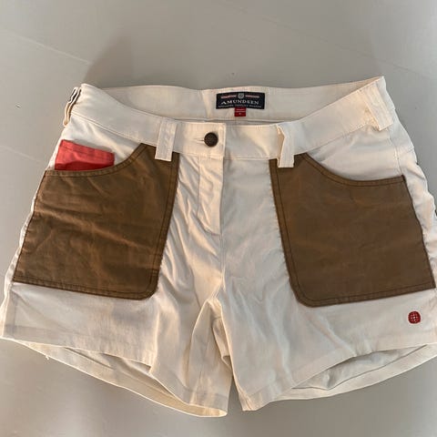 Slitesterk og allsidige shorts for dame til aktive sommerdager. Lette og bevegelige for komfort fra tursti til hverdag. Gjennomtenkte detaljer gir fri bevegelse og praktisk oppbevaring. Den tidløse stilen gjør dem like klare for fjell og kyst som for by. Laget for tøft utendørsbruk, i ekstra sterk stretch Cordura fra Sverige, forsterket med forsterkninger i vokset bomullsduk fra Skottland. Over den høyre lommen finner du signaturforvitrede røde klokkelomme.