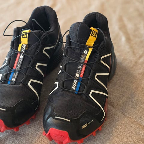 Salomon Spike winter cross spike løpesko i størrelse 44. Modellen er perfekt til glatte vinterdager, med gode pigger. Vanntet så veldig fine i snø også. Selges da de har blitt brukt cirka 20km på et år, er vel 3 løpeturer de har blitt brukt.