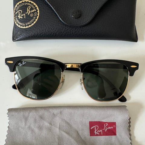 Selger mine RayBan clubmaster solbriller som jeg fikk i gave for mange år siden - kun prøvd på, aldri brukt. (RB3016) Etuiet følger med.