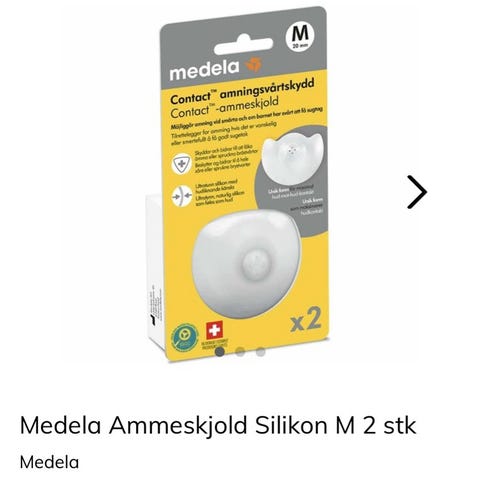 Medela Contact ammeskjold i størrelse 20 mm. Ammeskjoldene er laget i gjennomsiktig silikon og er formet for å ligge mot brystet under amming. Leveres som sett med to ammeskjold. Egnet for bruk ved ømme eller såre brystvorter under amming.